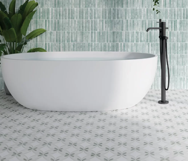 This decorative tile features a flowing, nature-inspired pattern with gentle curves and balanced geometry. Its muted palette and elegant form create visual interest without overwhelming a space, making it ideal for both contemporary and classic interiors. Perfect for feature walls, bathrooms, kitchens, or statement floors where subtle pattern and calm sophistication are key.